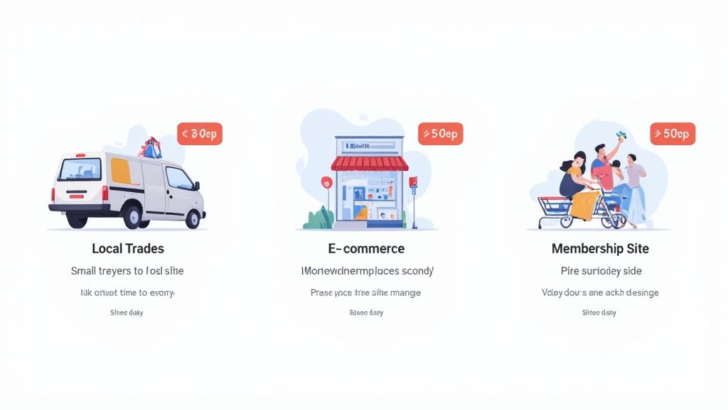 Talk of server specs and price brackets is all well and good, but it's much easier to grasp when you see how it applies to real businesses. To help you figure out a sensible budget, let’s walk through three common scenarios. Each one shows how website hosting prices line up with different business needs, giving you a proper benchmark for your own project.